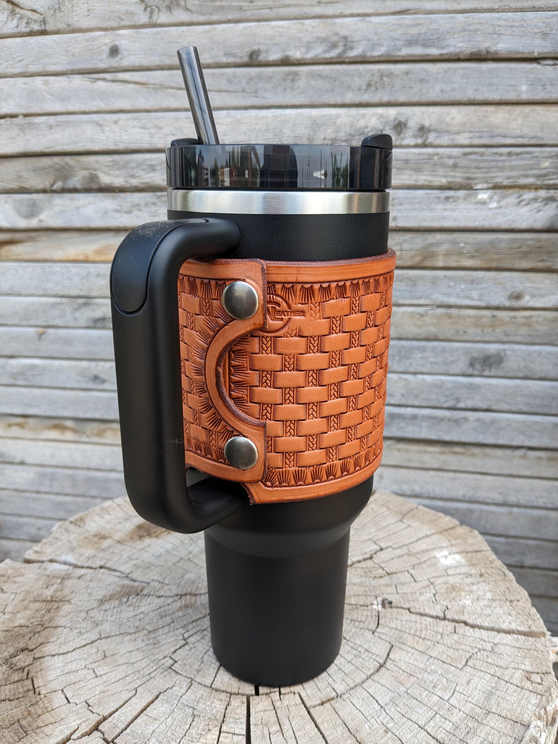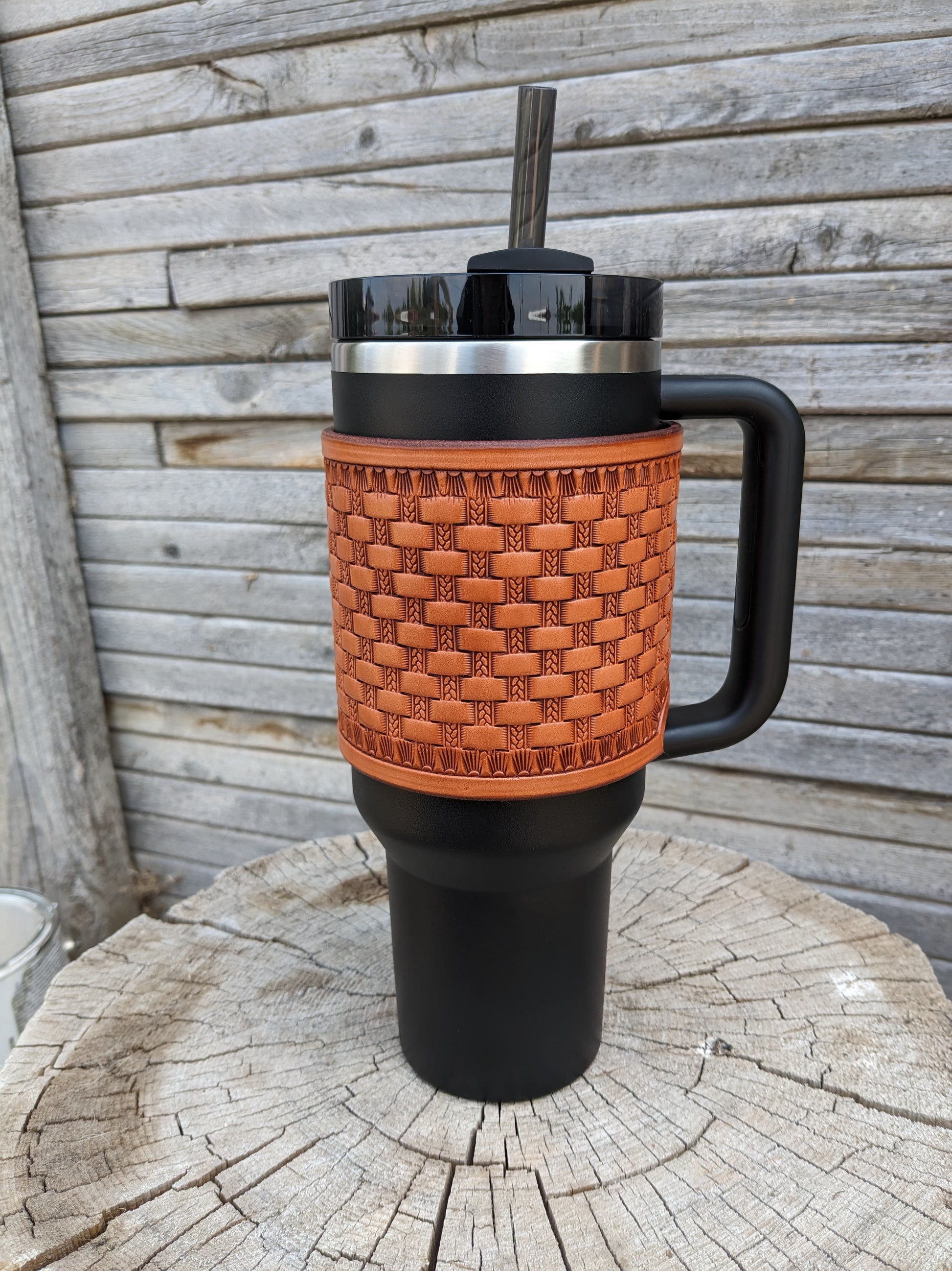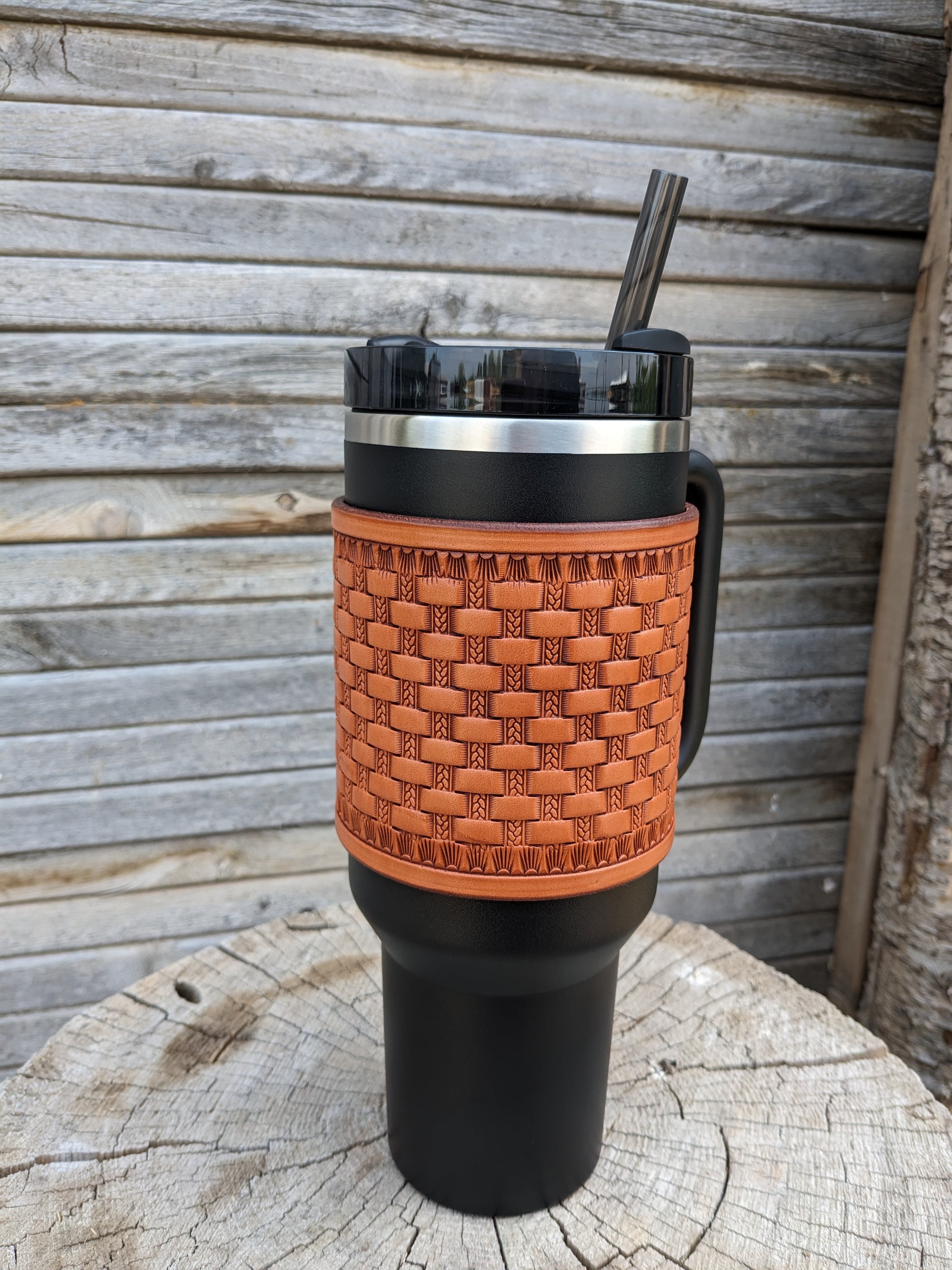 Hand tooled leather wrap for your favorite Stanley. Don't have a Stanley you say? Don't worry this wrap comes with one ready to go!