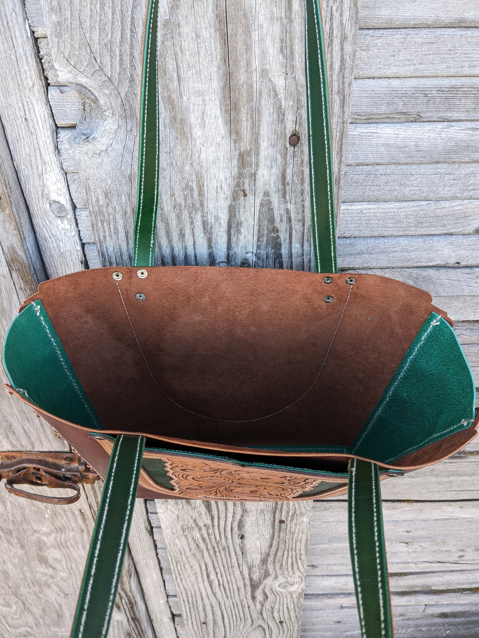 Beautiful tote made from Italian buttero leather. Has two nice oversized pockets for easy access to phone, clutch, and keys.