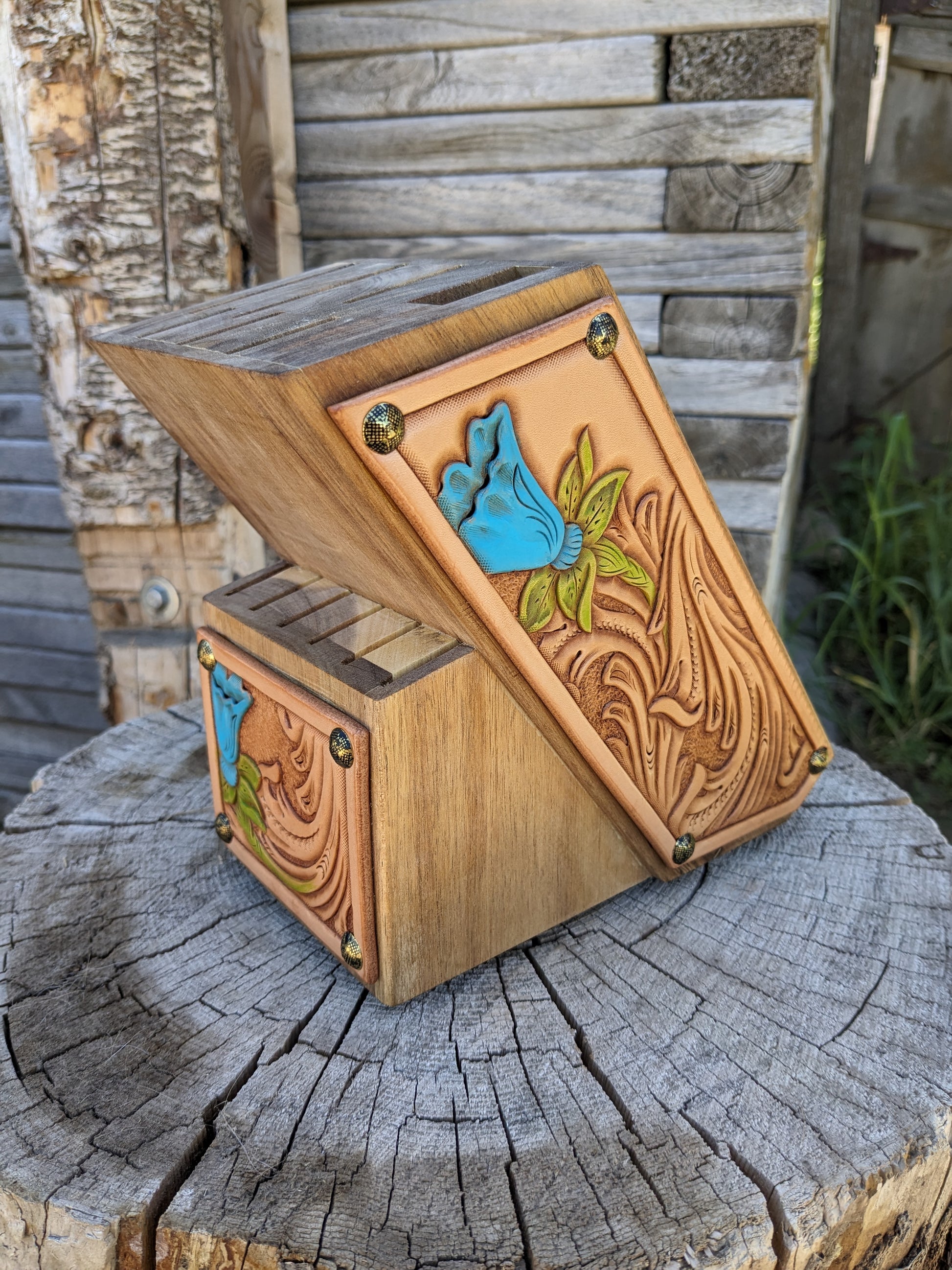 This stunning knife set makes the perfect addition to any western or country kitchen. Brand new pioneer woman knife set with custom leather tooled wooden block. Hurry you don't wanna miss out on this one!